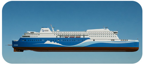 秦仁线新型滚装船是秦皇岛至韩国仁川短程国际航线量身定制的高端装备,入籍CCS,拥有800客位300箱位,在设计上实现多重突破。作为节能环保型现代化客滚船的典范,该船集多元运输功能于一体,既能高效完成旅客运输,又可承载轿车、载重汽车、集装箱拖车、滚装货物、标准集装箱及冷藏集装箱等多种货运单元,实现 "客货并举、一站直达" 的运营优势。